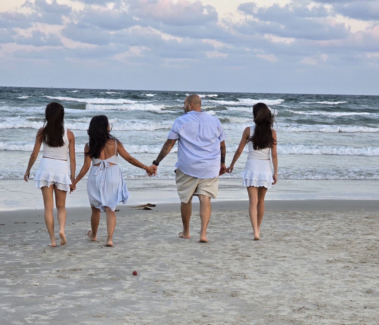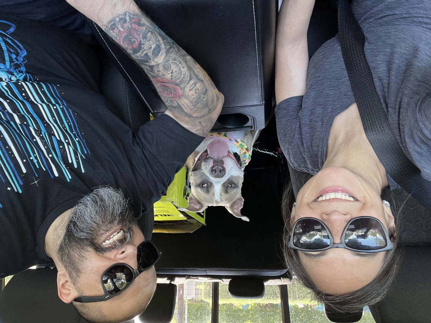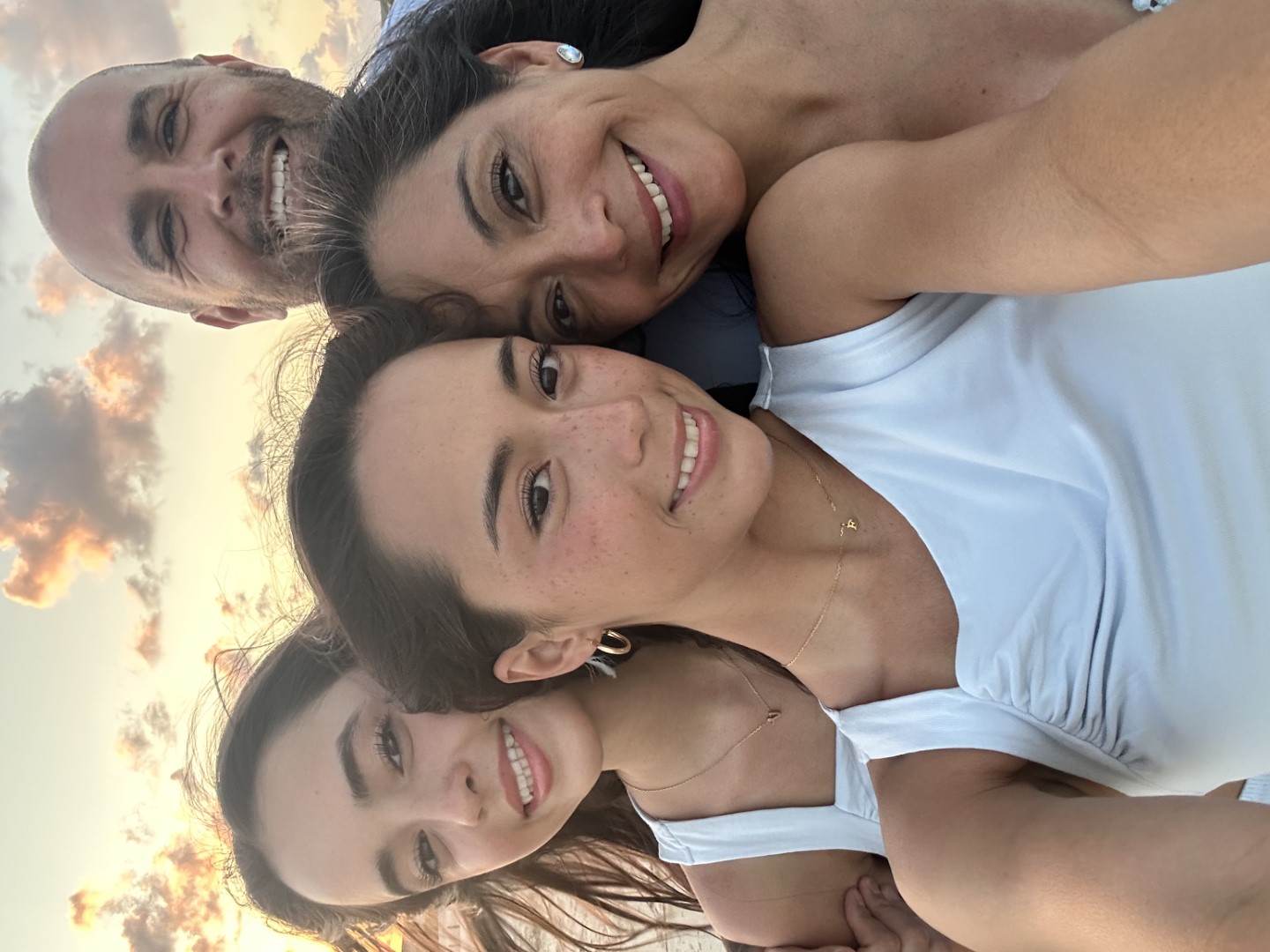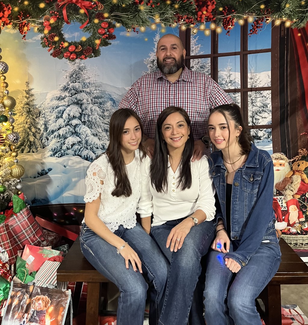 Together, we’ve blended our family: my beautiful daughters, Evelyn and Vivian, and our two fur babies, Canela and Uva.