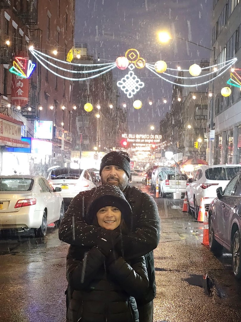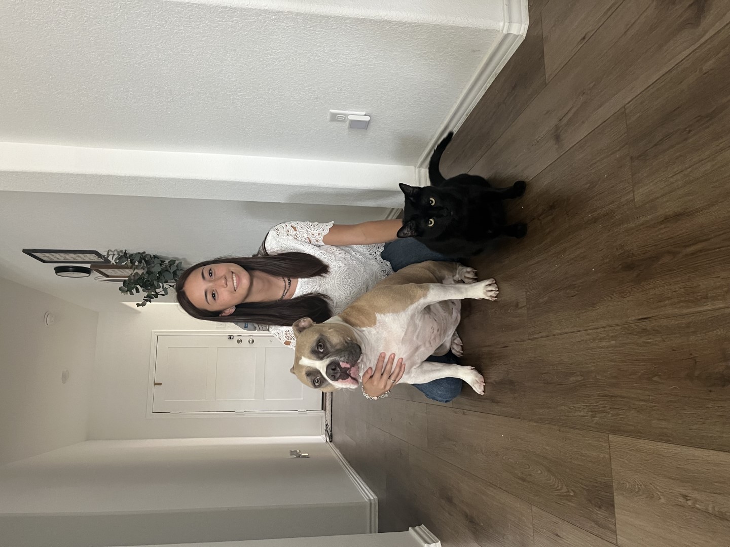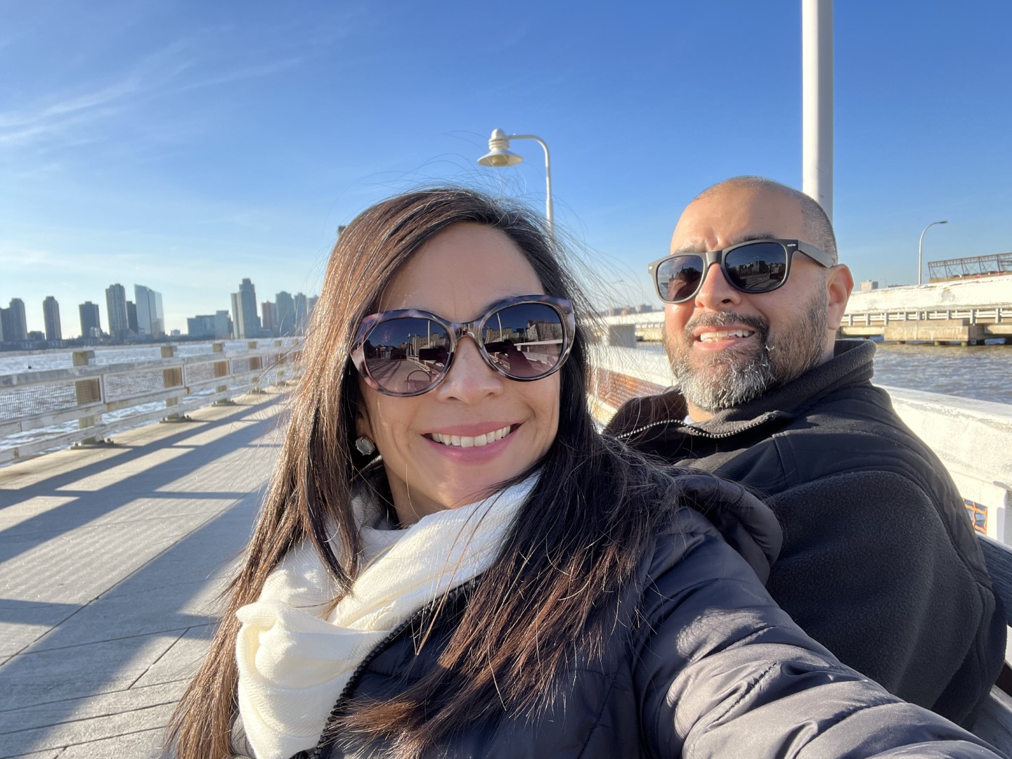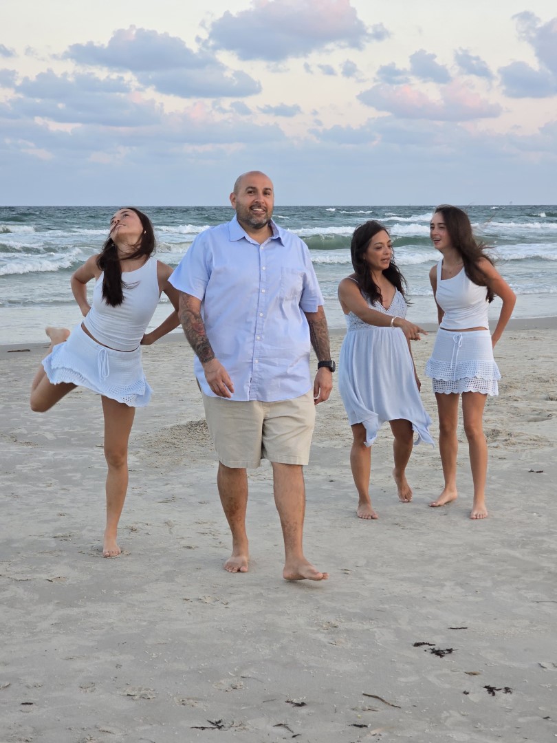 Together, we’ve blended our family: my beautiful daughters, Evelyn and Vivian, and our two fur babies, Canela and Uva.